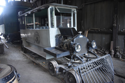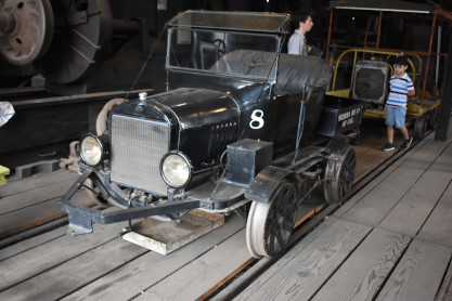 Hetch Hetchy Railbus 19 built by Thomson-Graf-Edler/White in 1918. The first "track bus, this could carry thirteen passengers, but was primarily used as an ambulance car during construction of the O’Shaughnessy dam carrying injured and to the hospital in Groveland.