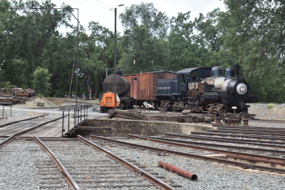 We went outside and Austin discussed the Sierra Railroad turntable with us. Also in this picture is Pickering Lumber Company 3 truck shay 7 built by Lima Locomotive Works in 1925.