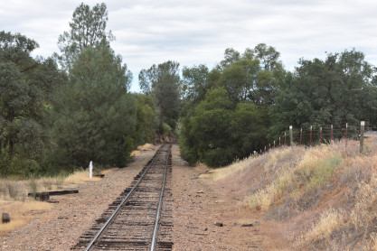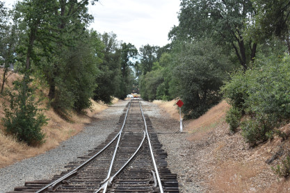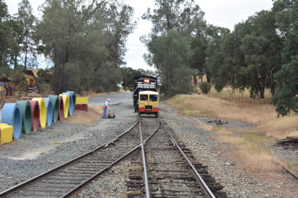 Our two day trip homeI drove CA Highway 108 to J59 west to a left on Bellevue Avenue to a right on Lake Road to a left on East Yosemite, then turned right on North Arboleda Drive to CA Highway 149 to Santa Fe Drive which we took south and found our first BNSF train.