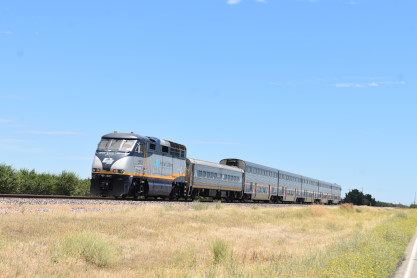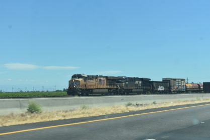Amtrak San Joaquin 714 came flying by on its way to Bakersfield. We stayed on Santa Fe Drive to Road 22 then CA Highway 99 south.