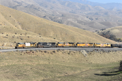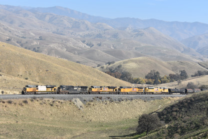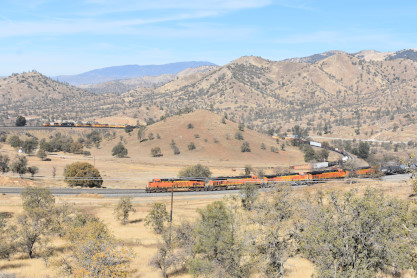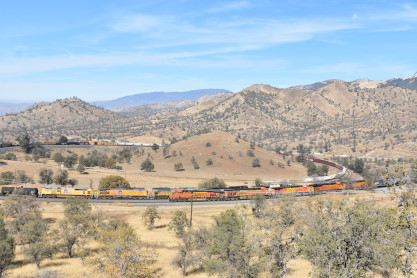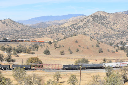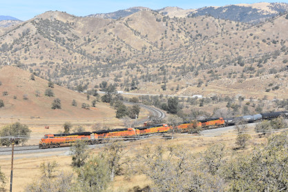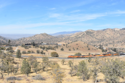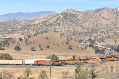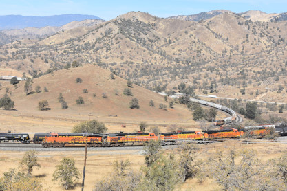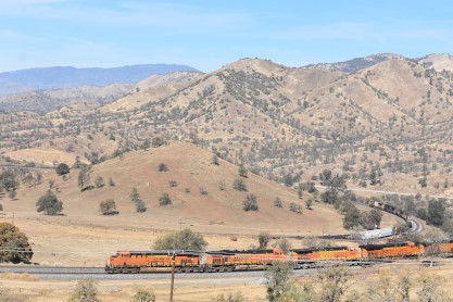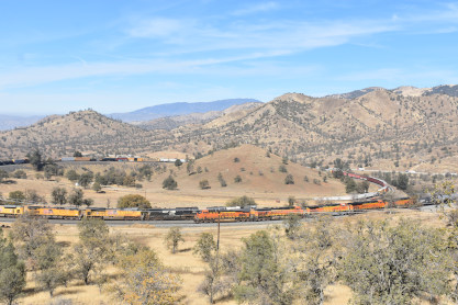 Union Pacific 8422 East rounded the Tehachapi Loop. Now it was BNSF 8318 West's time to round the Tehachapi Loop.