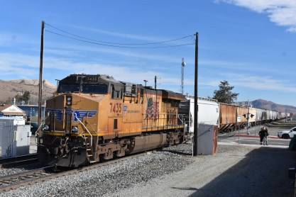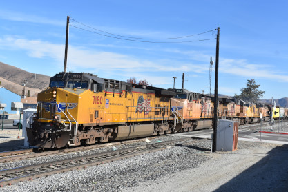 Union Pacific DPU C44ACM 7435. We visited the gift shop, bought a pair of golf shirts and I bought "Railways of Southern California" by Colin J. Marsden before driving us back to Soledad Canyon west end then Elizabeth drove us to Jersey Mike's in Orange where I had a roast beef sandwich and Elizabeth a turkey sandwich, before the short drive home.