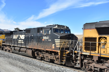 Union Pacific 8422 East with Norfolk Southern C40-9W 9841 and DPU Union Pacific 7435 in the consist at Tunnel 2. We left here but were stopped at Bealville by this same train then headed to the Tehachapi Loop and had a big surprise as the overlook area has been upgraded.
