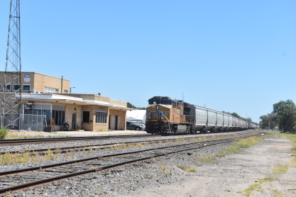 Elizabeth and I woke up at the Best Western in Dodge City and after doing our Internet duties, checked out and walked over to the International House of Pancakes for breakfast, after which we started our day of stations and steam engines. We did not have to go far for the first one.