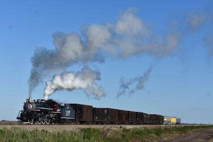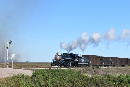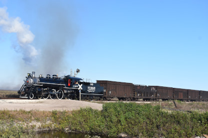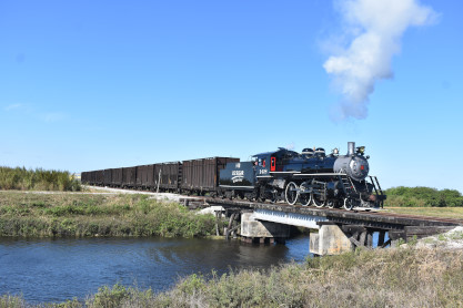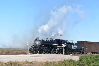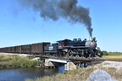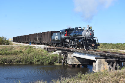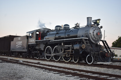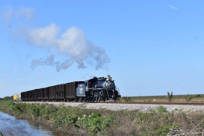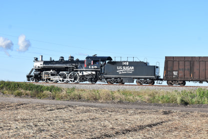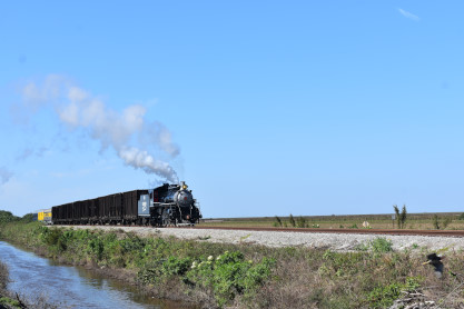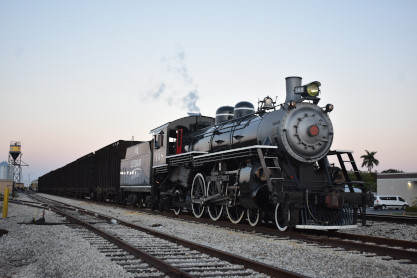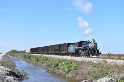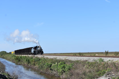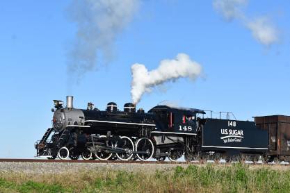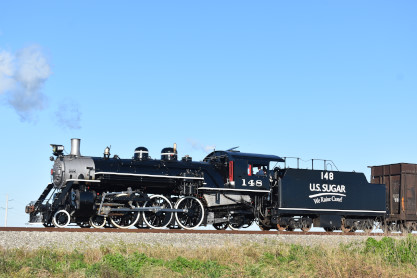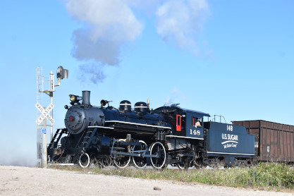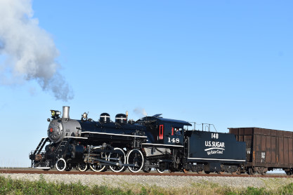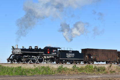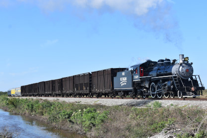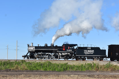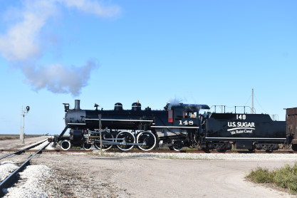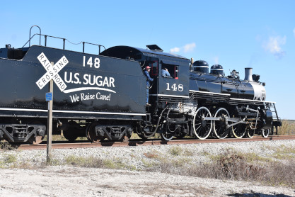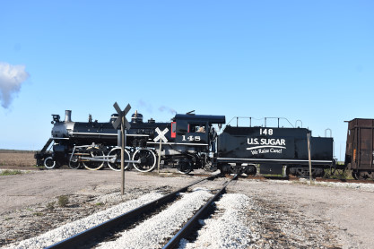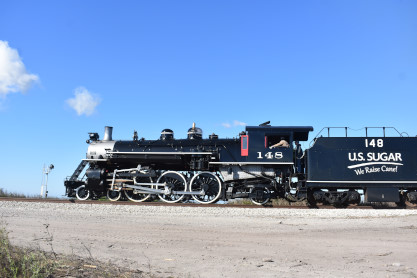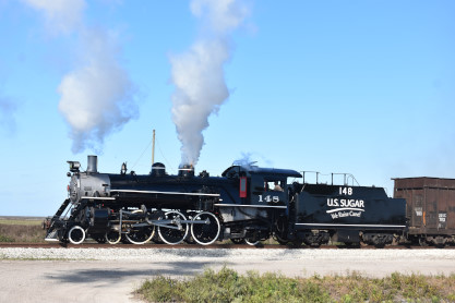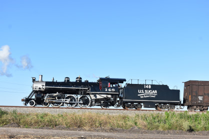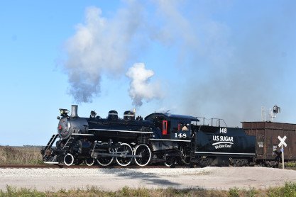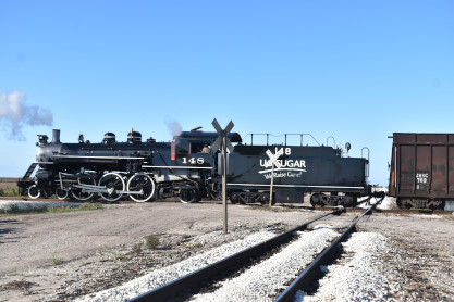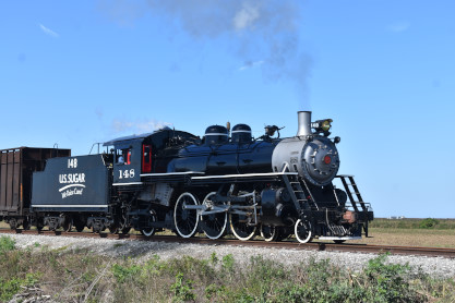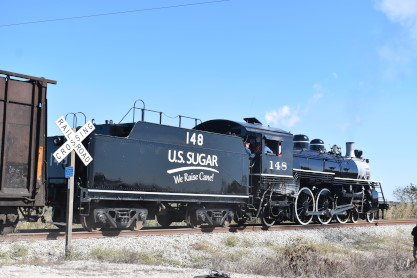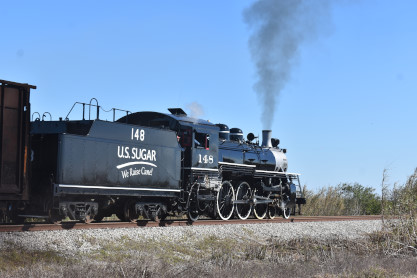 U.S. Sugar 4-6-2 148 ready for departure time. The train consisted of U.S. Sugar 148, 10 U.S. Sugar cane cars (all empty), Sugar Express table car 7137 "Palmdale", Sugar Express Baggage Car "Miami Locks" and platform observation car "Georgia 300" PPCX 8000113. These trips would be brand new trackage for both of us.