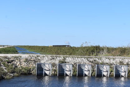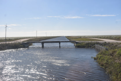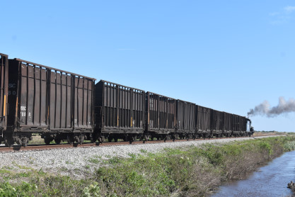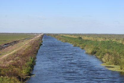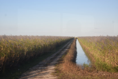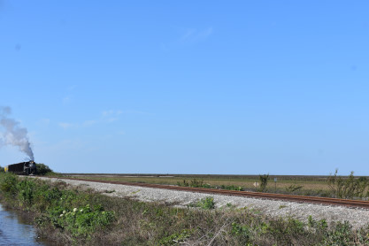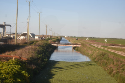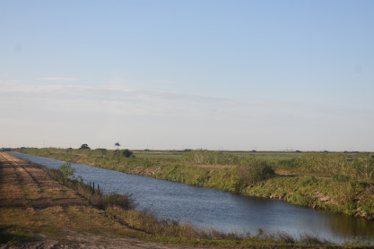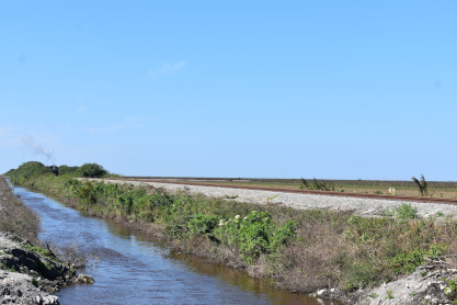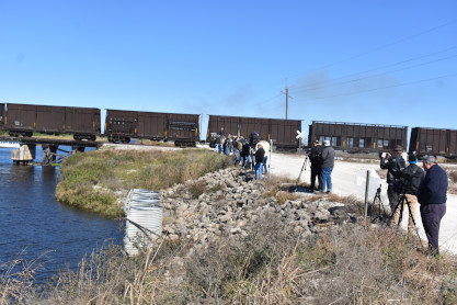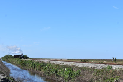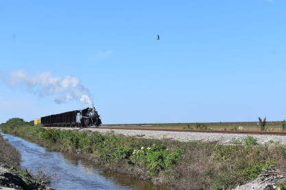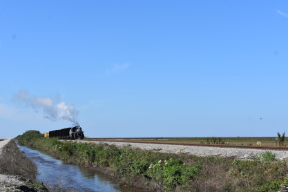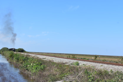 The canal along Rogers Road, the location of the first four photo runbys. We all detrained and set up. All of the runby locations had been chosen by Trains Magazine videographer Kevin Gilliam and vegetation had been cleared with the assistance from U.S. Sugar and the Sugar Express. Since we were operating on an active railroad, the chosen runby locations and their duration were fluid.