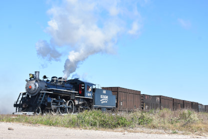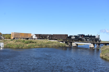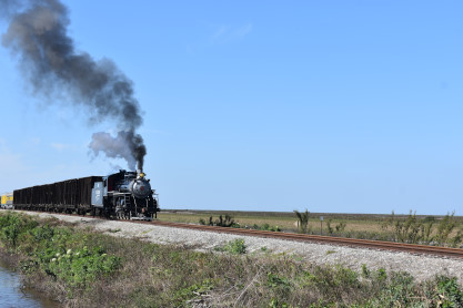 Reverse move thirteen showng you that US Sugar Express drumhead again. After a morning full of fantastic runbys, the passengers were all ready for lunch. A caterer from Moore Haven had been organized and prepared a delicious meal of pulled pork, coleslaw and baked beans with chocolate chip cookies for dessert.