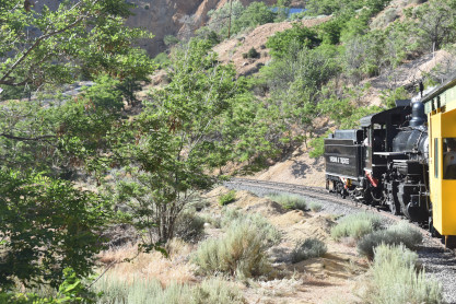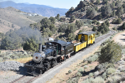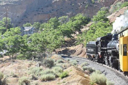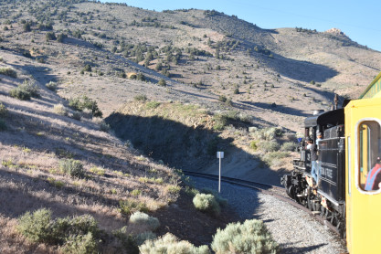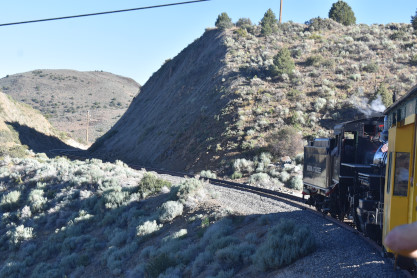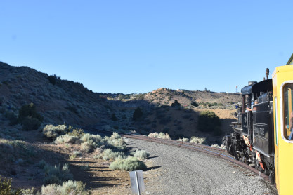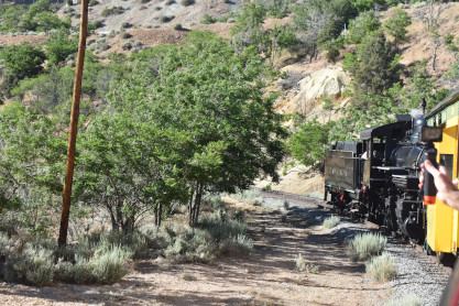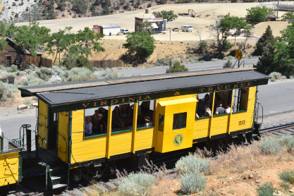 Finally, you will stop in Gold Hill , rich in American history where the Comstock Era gold and silver strikes began in 1859. See the train depot, the Liberty Engine Fire Company monument , visit at the 1859 Gold Hill Hotel and see the early Bank of California building and the Maynard Block. Except for the last train of the day at 4pm, passengers can disembark in Gold Hill and visit the Gold Hill Hotel (note: they are currently not serving lunch but are worth a visit any time!) You can then return on a later trip the same day.