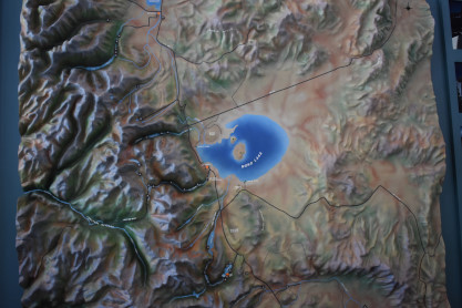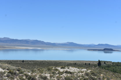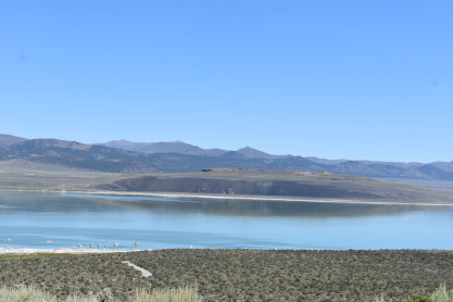Mono Lake, which is a saline soda lake in Mono County formed at least 760,000 years ago as a terminal lake in an endorheic basin. The lack of an outlet causes high levels of salts to accumulate in the lake which make its water alkaline. The desert lake has an unusually productive ecosystem based on brine shrimp, which thrive in its waters, and provides critical habitat for two million annual migratory birds that feed on the shrimp and alkali flies. Historically, the native Kutzadika'a people ate the alkali flies' pupae, which live in the shallow waters around the edge of the lake. When the City of Los Angeles diverted water from the freshwater streams flowing into the lake, it lowered the lake level which imperiled the migratory birds. The Mono Lake Committee was formed in response and won a legal battle that forced Los Angeles to partially replenish the lake level.