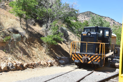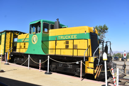 Virginia and Truckee 44 ton switcher D-3, ex. Yuma Valley Railway 3, nee United States Marine Corp switcher built by General Electric in 1943. It arrived in May 2013 and was repainted to V&T colors in July 2017.