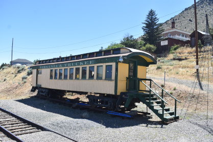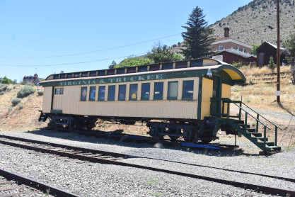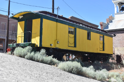 Virginia and Truckee Combination Car 25, ex. Northwestern Pacific Railroad 37, nee San Francisco and North Pacific Railroad 37, built by Harlan and Hollingsworth in 1888. It arrived on site in 1975 and was used as the Virginia City ticket office from 1976 to 2013.