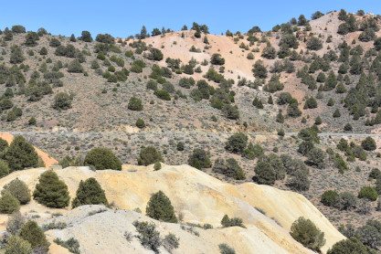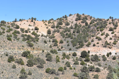 Views of the truck highway (US 143) on the hill. It is closed for three days each year for the Gold Hill Climb, a car race.