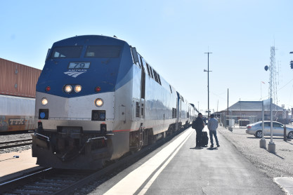 5/31/2022 Elizabeth and I woke up at Garden City, Kansas and we cuddled in the lower bunk then went to breakfast where I had the worst French Toast of my train riding years as it was over-cooked. Elizabeth had the three-egg omelette which was excellent. Aftewards, we went to the lounge car both checked our e-mails and the Internet so I was able to upload the last two stories from Chicago. I returned to the room and updated this story as the train was running late. It arrived in La Junta where we both took a fresh air break and it was announced that the toilets in our sleeping car went out so we would have to use the ones in the car ahead of us.