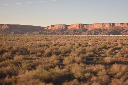 Red Mesas of New Mexico and a BNSF train in the last two pictures. We stopped at Gallup but we both stayed on and headed into the sunset. We had Pinky make up the room and we were in bed by by Winslow, Elizabeth taking the uppper bunk and I the lower. I slept soundly my last night on the train.