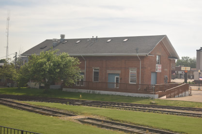 The wonderful state of Missouri. As we stopped at La Plata, we noticed the station is undergoing restoration then ran by the eastbound Southwest Chief, running eleven hours and forty-two minutes late, east of Carrollton, Missouri. Pinky made up the room and I went to the lounge car and called Greg Smith to give him an update on the trip, then returned to the room where Elizabeth tonight took the upper bunk and I slept in the lower bunk. I was soon off to dreamland.