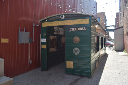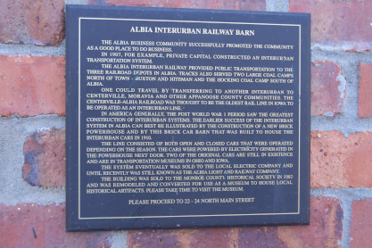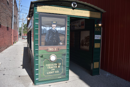 Oskaloosa-Buxton Electric Railway station ran from 1907-1920. The name Trolley Place comes from the earlier days of Oskaloosa when the trolleys would park in front of this location. In 1880 the Oskaloosa Street Railroad and Land Company had three lines radiating from the square, with a total of four cars and twenty-one horses over four miles of line. 1898 saw standard gauge track and the cars were electrified. In 1902, the name was changed to Oskaloosa Traction and Light Company In 1906 the interurban also served Beacon, and had a line that ran to the then boom town of Buxton, Iowa 15 miles to the southwest of Beacon.