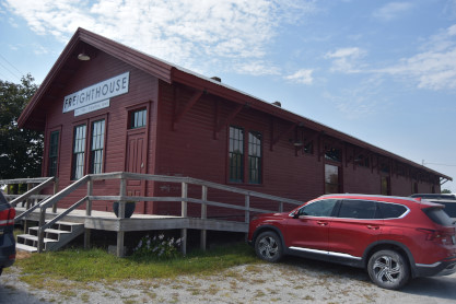 The station and caboose in this view. The two of us drove over to the interurban station.