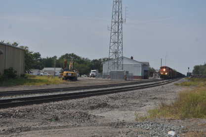 Chicago Burlinton and Quincy Albia freight house. We saw a lone locomotive nearby and went to explore.