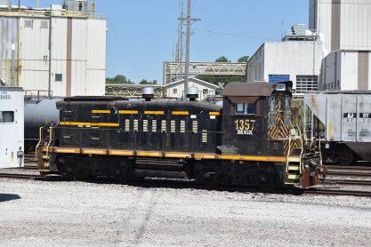 BUGX SW1200RS 1357, ex. Pioneer Rail Corp 1357, nee Canadian National SW1200 1357, built by Electro-Motive Division in 1957. From here we went to Lock and Dam 19.