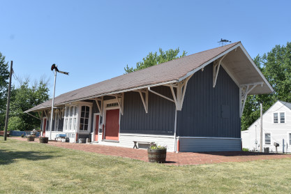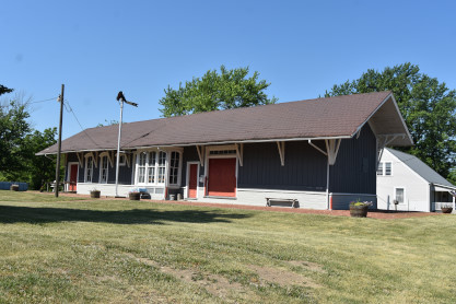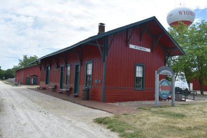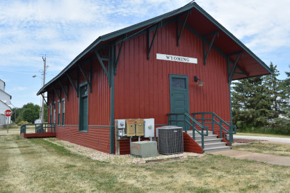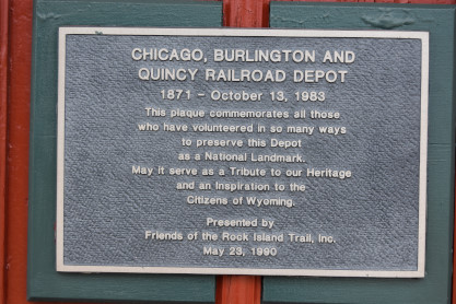 Chicago, Burlington and Quincy Wyoming station built in 1879, now the headquarters of the Rock Island Trail State Park. Wyoming was on the CB&Q's line between Buda and Elmwood, Illinois. The 44-and-a-half-mile mile line was built by the Dixon, Peoria and Hannibal Railroad and was bought by the CB&Q in 1899. The Buda-Elmwood branch of the railroad, which by that time had become the Burlington Northern Railroad, was torn out in 1984. The station is near the former Peoria and Rock Island Railroad line, between the Quad Cities and Peoria. That 86 mile line was operated by the Chicago, Rock Island and Pacific Railroad and did not utilize the CB&Q depot. Furthermore, after the Great Depression, the Chicago, Rock Island and Pacific ceased to offer passenger service on its line, and that line itself was abandoned in 1963.
