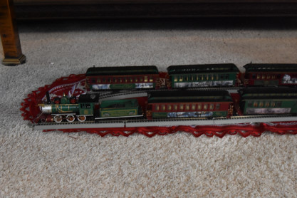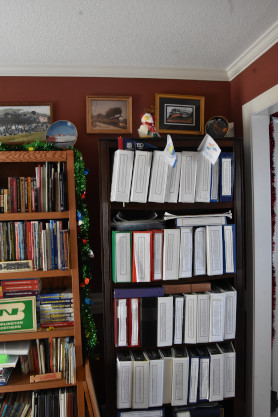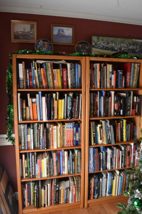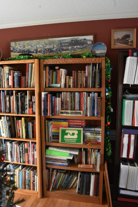 Our railway book collection and Elizabeth's railway photograph albums did not escape the garland treatment.