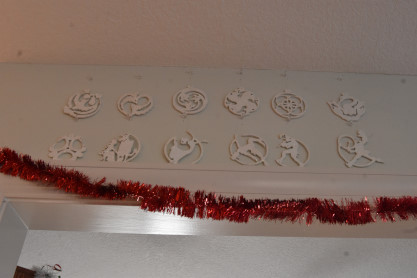 The Twelve Days of Christmas was hand-carved with a saw by Mrs. Sharon Tamblin, wife of Elizabeth's first boss in Victoria.