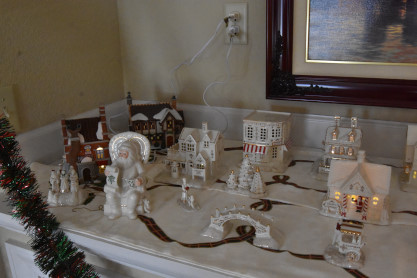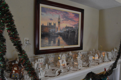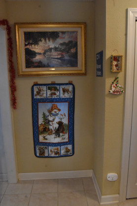One of our Thomas Kindade paintings, "The River Queen", with a beautiful winter wall hanging.