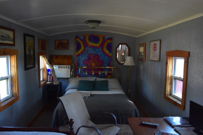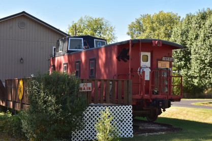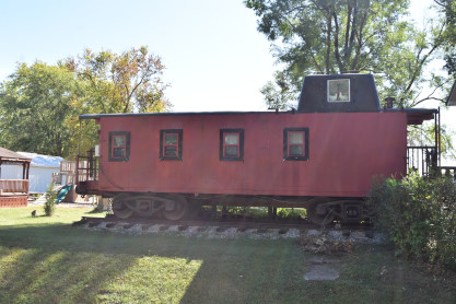 10/5/2023 We went to the Bob Evans for breakfast before returning to the house. The Furniture Row order of two desks and my reclining car was delievered and the three boxes that were shipped separately arrived after which I drove us to Hartsburg where we met a man who invited us into his caboose. He was not sure of its history.
