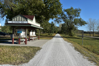 The Katy Trail in McBaine. We returned home then drove to Jefferson City and stayed at the Travelodge for the night since we had no bed until tomorrow.