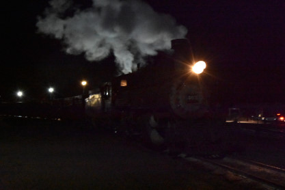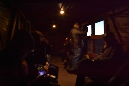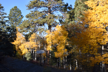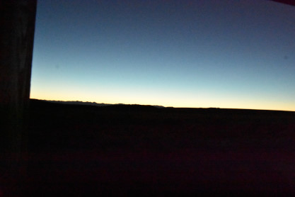 Our train in the night. We boarded a converted box car with benches, a first for Elizabeth then Dak held a safety meetinhg in the open gondola, after which we departed Antonito at 6:15 AM.