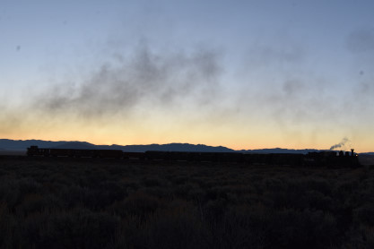 Photo runby nineteen. The train returned to Antonito and the two of us drove over to Dutch Mill Restaurant where we both had pork chops then returned to motel and later, I walked back to the yard to photograph the steam engines in the late evening