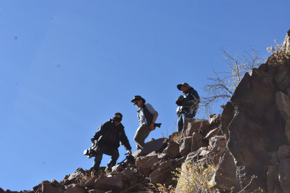 Dak Dillon, leader of our group, helps people down from the upper photo line.