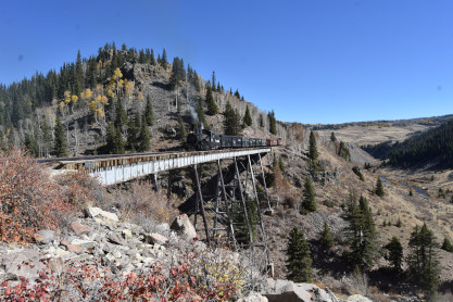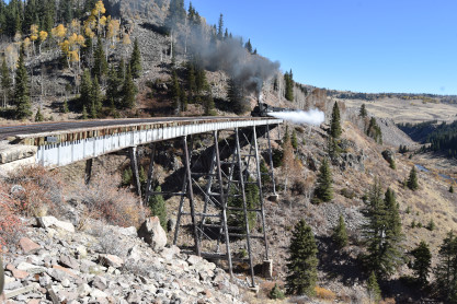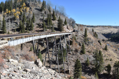 The trip through Osier to Cascade Trestle, the highest bridge on the Cumbres and Toltec Scenic Railroad at 137 feet high, milepost 319.9.