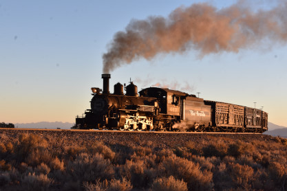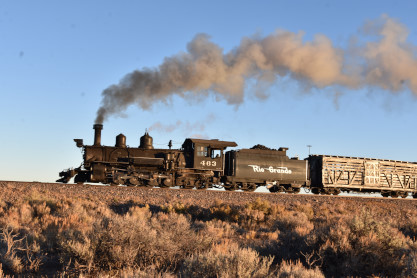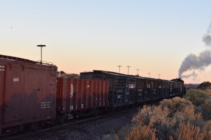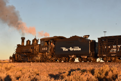 The charter will depart Antonito pre-dawn with photo opportunities from sunrise to late-afternoon. The train will operate from Antonito and begin with sunrise at Lava Tank before making our way to Cascade Trestle (subject to change) with runbys planned for numerous locations463 will pull approximately 6 or 7 livestock stock cars (shown in the historical photos on this page) along with rider boxcars and a caboose for photographers to ride in. The train will have a bathroom available in the bathroom boxcar. After our return to Antonito, will set up professional LED lighting for photos of the engine in the yard during twilight and into the evening. A box lunch is included in the ticket price.