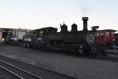 Denver and Rio Grande Western K27 483, nee Denver and Rio Grande Western 463, built by Baldwin in 1923. It was owned by Gene Autry from 1955 to 1972 but he never used this engine and donated it to the town of Antonito where the Cumbres and Toltec Scenic Railroad restored it in 1994.