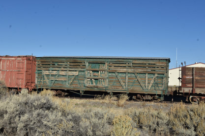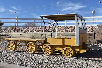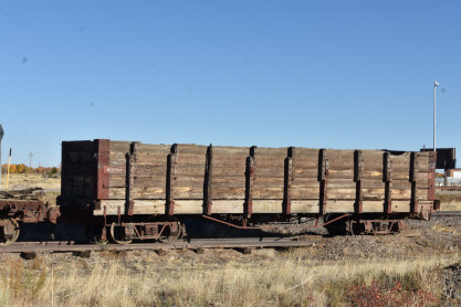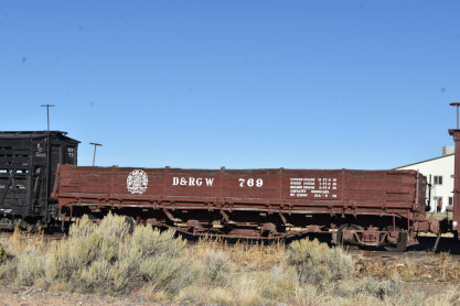 Denver and Rio Grande Western flat car 6627 built by the railroad in 1956 from a standard gauge box car. From here I drove us to Walsenburg.