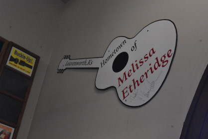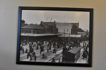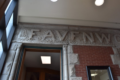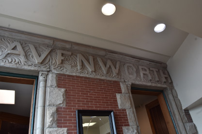 The original entranceway to the station with the large "Leavenworth" on the wall.
