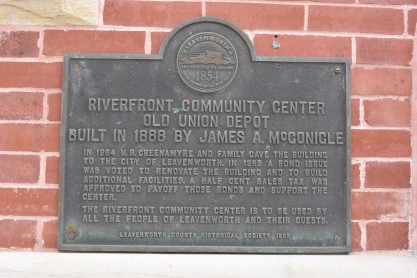 Union Pacific Leavenworth station built in 1887 by James A. McGonigle, to a design by the Chicago architecture firm Cobb and Frost. In 1984, V.B. Greenamyre and Family sold the building to the city of Leavenworth. Using funds from a bond issue, the depot was renovated with a basketball gym, cardiovascular fitness room, weight and strength training room, racquetball courts, an indoor pool, activity rooms, meeting rooms and a one-tenth-of a mile indoor walking track. The facility opened to the public in 1988, 100 years after its construction.