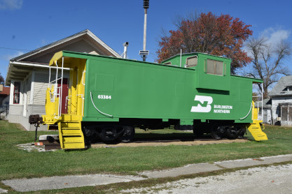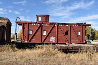 Chicago Rock Island and Pacific caboose 17658 originally built by the Bettendorf Company in Bettendorf, Iowa, in 1902 as a B-2 boxcar, with an outside frame. It served as a boxcar for 30 years. In 1942 the Rock Island needed cabooses for the war effort but the War Production Board would not allocate the steel to manufacture cabooses, so the Rock Island utilized the old B-2 boxcars and turned them into cabooses in 1942.