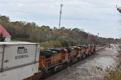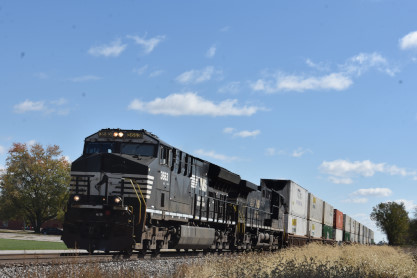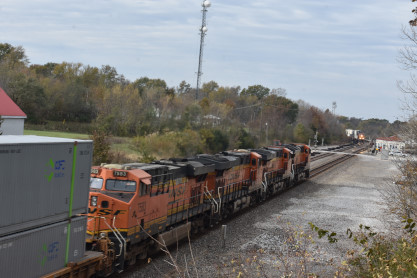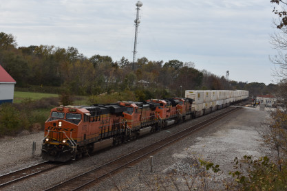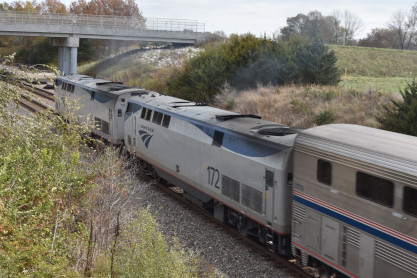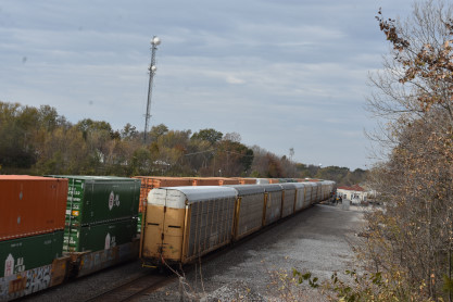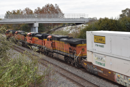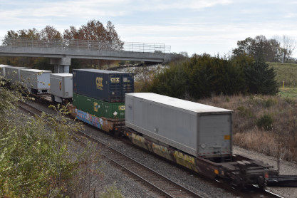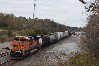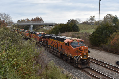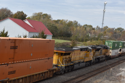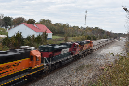 Two days later, 11/4/2023, Elizabeth and I arose and after checking our e-mail, we left the house and I drove us to Bob Evans for another excellent breakfast. I then drove us north on US 63 and drove north to La Plata and to the Chris Guenzler Million Mile Lookout Point. It did not take long for trains to pass our photo location.