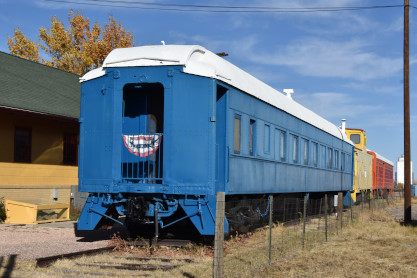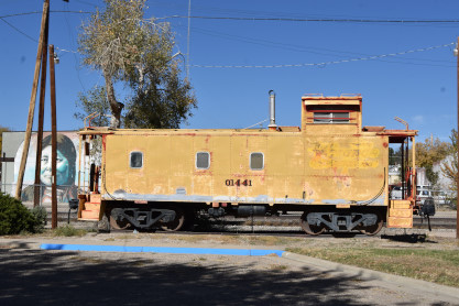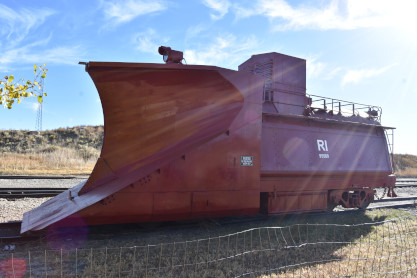 Rock Island wedge snow plow 95580 built by the railroad in 1951, rebuilt from a retired steam locomotive tender. It was transferred to the Union Pacific Railway in 1981 and assigned to serve from Oakley, Kansas. In 2018 it was relocated to the Limon Heritage Museum.