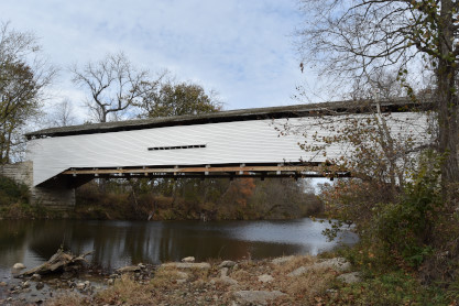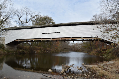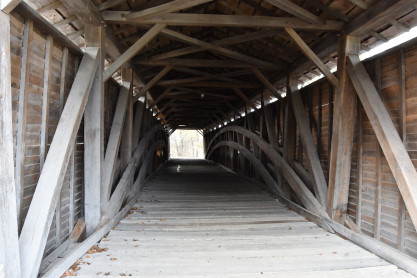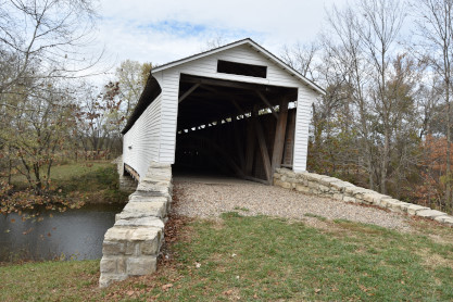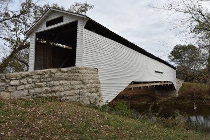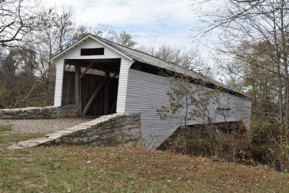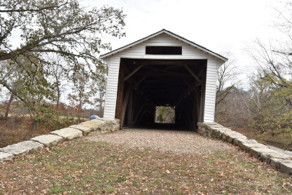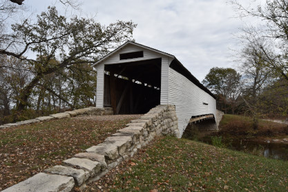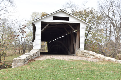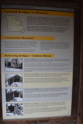 The Wabash grade through Altanta. We drove to Moberly then went east on US 24 east to County Road C, which took us to a new covered bridge, the Union Bridge, one of four remaining covered bridges in Missouri. This bridge was built by Joseph C. Elliot, which is the only remaining bridge left in Missouri representing the Burr arch truss system. The Burr arch design which Elliot doubled, was named for its creator Theodora Burr, the Father of American bridge building. This bridge crosses the North Fork of the Salt River. It is 129 feet long, 17 1/2 feet wide and has an entrance 12 feet high - high enough to admit a wagon load of hay. It served travellers for ninety-nine years and is now on the National Register of Historic Places.