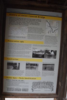 Eight very informative panels about this covered bridge, and covered bridges in general, the most we have seen in our visits to Oregon, midwestern and eastern covered bridges. From here I drove us to Farber and a train station.
