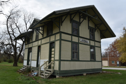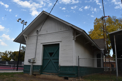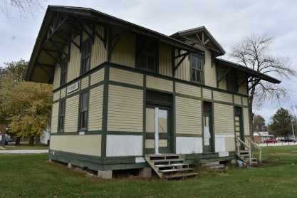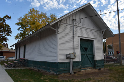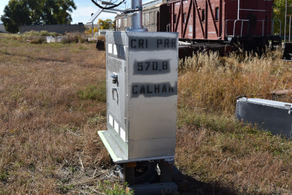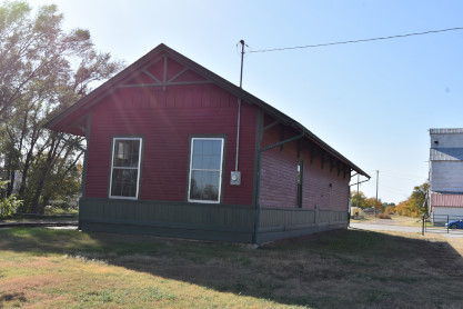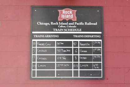 The Calhan Depot, 704 Fourth Street, was initially built and owned by the Chicago, Kansas and Nebraska Railroad, a separate, but associated company of the Chicago, Rock Island and Chicago Railway. It existed from 1888 to 1891 when it was absorbed into the Chicago, Rock Island and Pacific Railroad. In the late 1880s, the officials from Illinois-based Rock Island Railroad Company found good quality shallow groundwater in Calhan and thought the virtually treeless land would make an excellent stopping point between Limon and Colorado Springs. The first train passed through Calhan on November 5, 1888, according to Larry L. King’s book, “The History of Calhan and Vicinity 1888-1988.” That prompted the opening of the town's post office 19 days later. The elevation of the Depot is 6,509 feet above sea level and is the highest elevation of any depot that had been on the Rock Island Railway. The distance to Chicago from Calhan is 996.0 miles and to Colorado Springs terminus is 37.4 miles. In addition to the depot, a section house, bunkhouses, water tower, pump house, and stock pens were built at the same time. There were two tracks in front of the depot and one behind it.