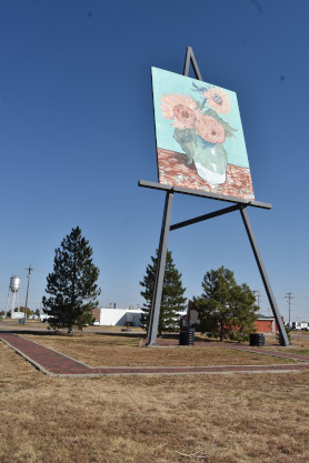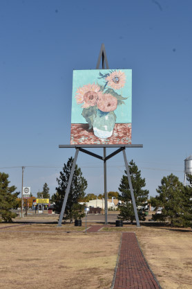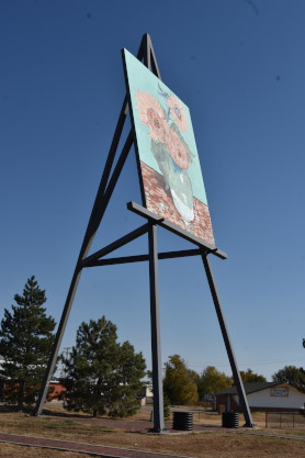 10/22/2023 Elizabeth and I arose and following our Internet duties, we checked out and drove to Mom's Kitchen, the only restaurant in this small town which serves breakfast. While a very small establishment, the food and service was excellent. Fortified, we had a very short drive to the world's largest easel here in Goodland.