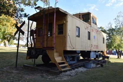 Missouri Pacific caboose 13587 built by International Car in 1975.