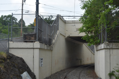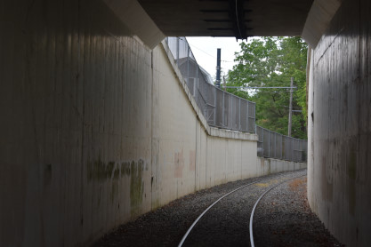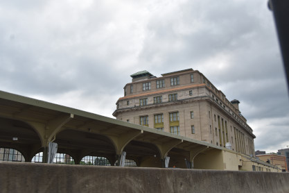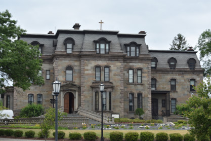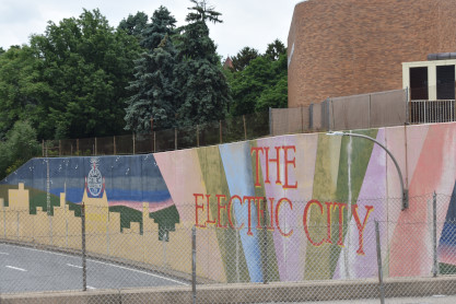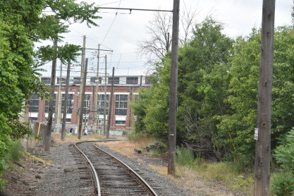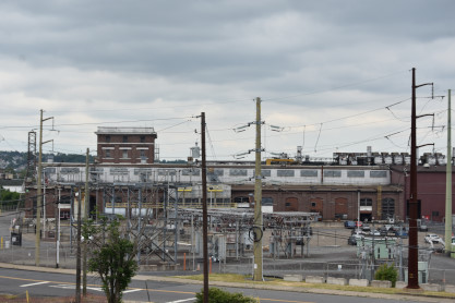 Part of the University of Scranton. The train stopped and I gave Elizabeth the window seat and I rode on the other side on the way back.
