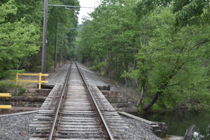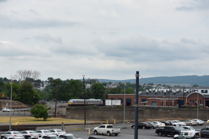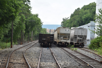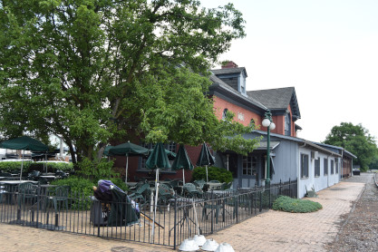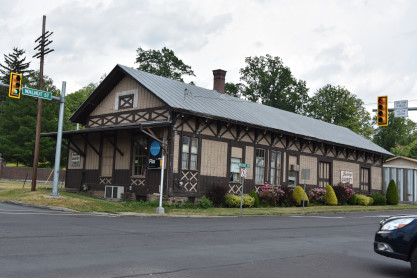 After that we returned to the Front Street Station Restaurant where we had an excellent dinner during a heavy rainstorm and a northbound empty Norfolk Southern coal train passed through while we dined. Fortified, we drove to Sunbury and found the Reading station.