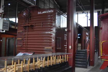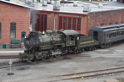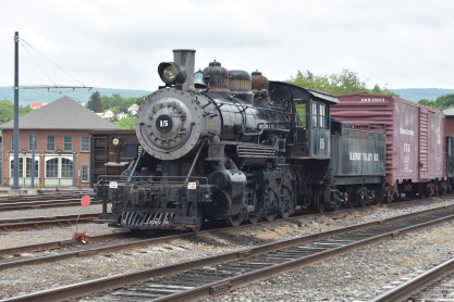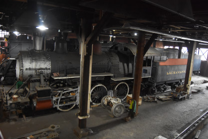 Delaware Lackawanna and Western 2-6-0 565 built by American Locotive Company in 1908. It worked for the Lackawanna for twenty-eight years and then in 1936, was sold to the Dansville & Mount Morris Railroad, a nine-mile shortline operating between Dansville and Groveland, New York. It worked for the D&MM until 1961, at which time the company acquired a diesel, and the steam locomotive was sold to William Whitehead for the Black River & Western Railroad, a small tourist line operating between Ringoes and Flemington, New Jersey. It was acquired by the museum in 1985.