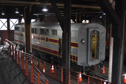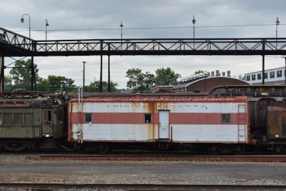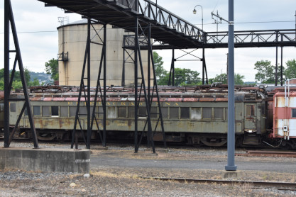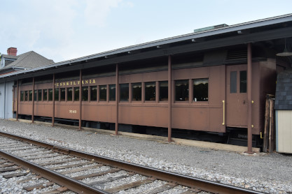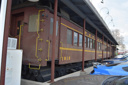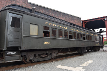 Delaware Lackawanna and Western m.u. motor unit 2560 built by Pullman/General Electric in 1910 masquerading as Pennsylvania Railroad 1910 ""Susquehannock" at the Front Street Depot Restaurant.
